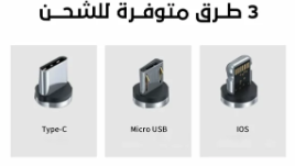 3 × رؤوس مغناطيسية للشحن السلكي (USB-C، Lightning، Micro-USB)